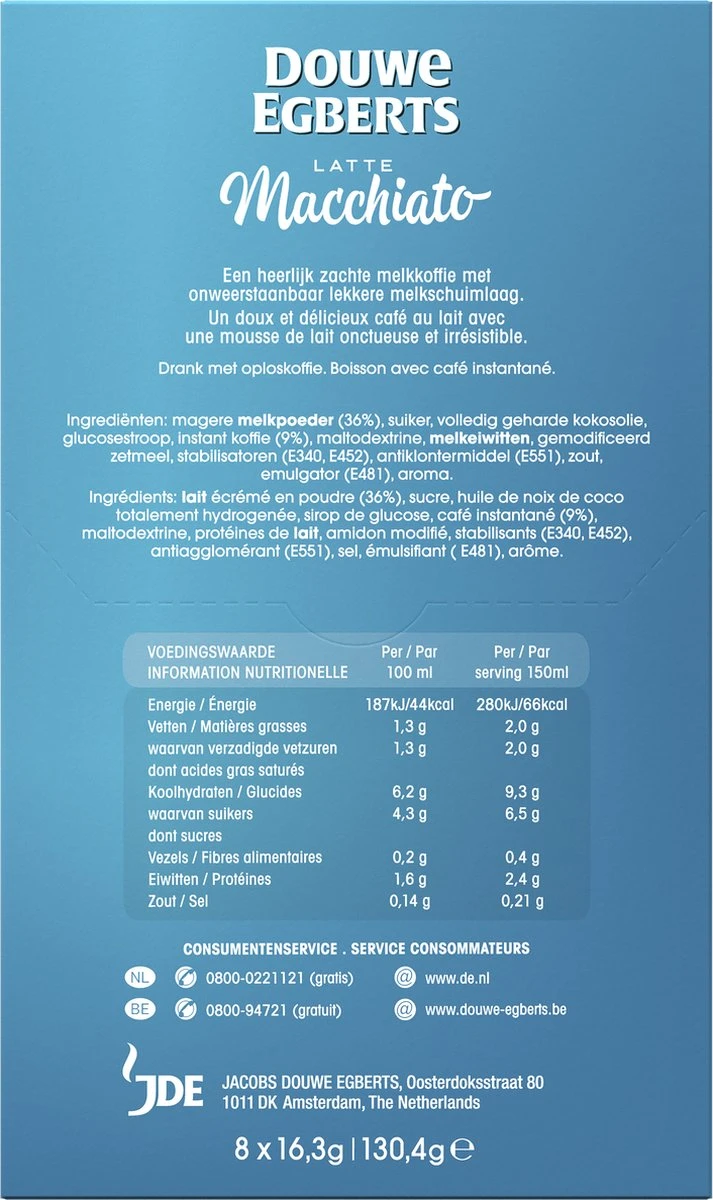 Douwe Egberts Verwenkoffie Latte Macchiato Oploskoffie – 5 X 8 Zakjes